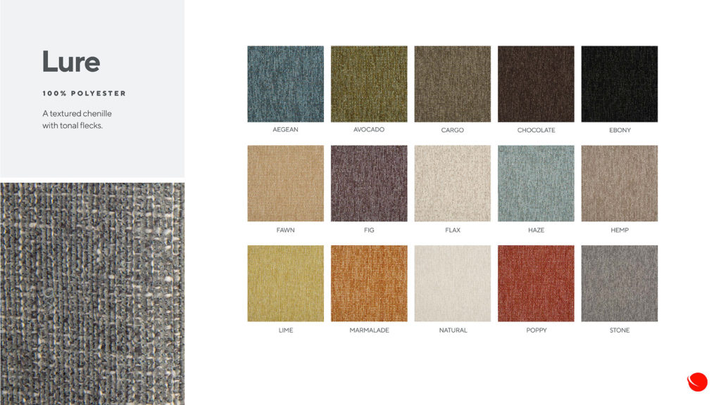 Look Book Page Lure Click image to view or download 100% Polyester. A textured chenille with tonal flecks ColorSelect…Aqua/TealBeige/TanBlackBlueBrownCoral/PeachGreenGrey/SilverMulti ColorOrangePinkPurpleRedRustWhite/Off WhiteYellow/Gold Reset filters Lure Aegean Lure Avocado Lure Cargo Lure Chocolate Lure Ebony Lure Fig Lure Flax Lure Haze Lure Hemp Lure Marmalade Lure Natural Lure Poppy Lure Stone Select…Sort by title (Z-A)Sort by title (A-Z)Sort by newestSort by oldest